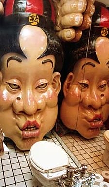 Andare in bagno al ristorante “Ten & Chi“, nel Lemina Building a Tokio, può essere per una donna una esperienza a dir poco traumatizzante. Il faccione sulla parete di fronte al water è già di per sé inquietante, ma in realtà quel che non lascia indifferenti è quel che succede dopo.