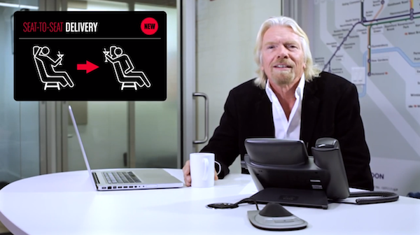 Di per sé l’idea è semplice: consente di offrire un drink ad una compagna/o di volo che si trova affascinante. Il tutto grazie ad un dispositivo touch screen incorporato nei sedili, che permette di fare l’ordine e poi di chattare con il “bersaglio” che si è adocchiato. Il tutto è accompagnato da un video con protagonista Richard Branson in persona che spiega come “essere fortunati a 35.000 piedi”.