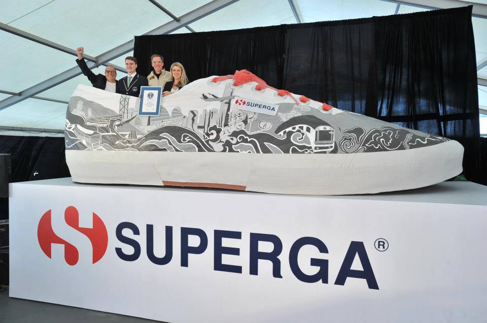 Quale è la scarpa più grande del mondo? Quanto è grande? Se vi siete fatti queste domande, sappiate che la risposta… è italiana. La scarpa più grande del mondo è infatti stata realizzata ad aprile 2013 dalla Superga, storico marchio torinese di calzature, ed è la replica del modello “2750”, probabilmente il più famoso del brand.