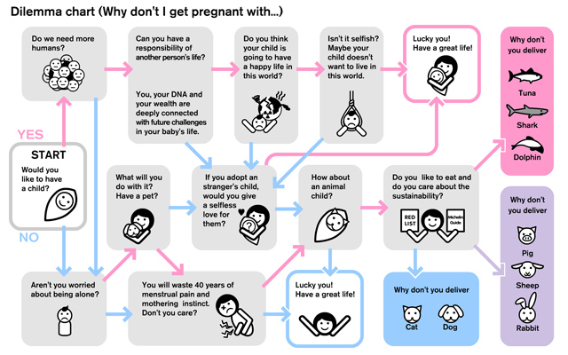 La designer e artista giapponese Ai Hasegawa ha un sogno decisamente strano: partorire uno squalo. Il motivo? Ci sono troppi essere umani, con il pianeta si sta sovrappopolando, e non è il caso di farne nascere altri. Ma c’è da soddisfare l’istinto materno femminile, quindi perché non mettere alla luce un animale?