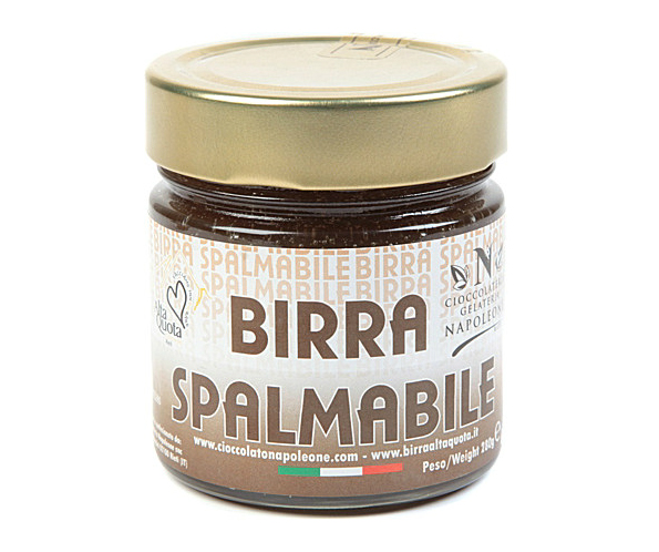 La birra spalmabile è un’idea della Cioccolateria Napoleone di Rieti, in collaborazione con il birrificio Alta Quota di Cittareale. I produttori lo descrivono così “È un prodotto dall’aroma intenso e dal gusto corposo. Accompagna egregiamente antipasti e formaggi, ottima sui crostini, originale idea per guarnire e farcire dolci di pasta frolla e soffici torte”. La birra spalmabile è offerta in due versioni diverse, ma non è chiaro dal sito del produttore quale sia la differenza tra le due (dovrebbe essere il tipo di birra utilizzato per realizzarli): non ci sono molte informazioni neppure sugli ingredienti, e i curiosi rimarranno probabilmente un po’ delusi dal sapere che a quanto pare il prodotto non è venduto online, ma è disponibile solo nel negozio di Rieti della cioccolateria.