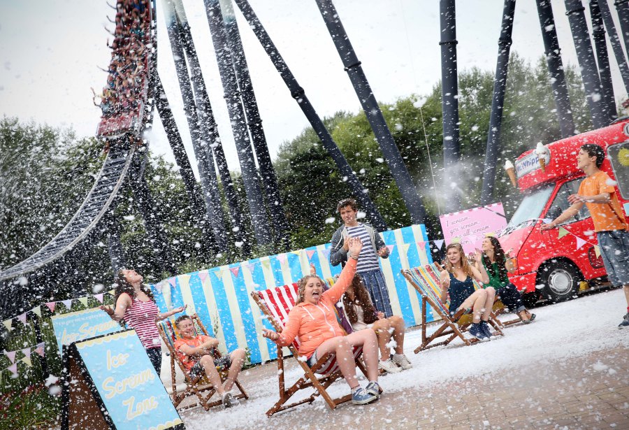 La neve di gelato è stata ideata per celebrare ironicamente il clima inglese, dalle piogge frequenti e improvvise ma che è per gli abitanti, abituati, sono spesso quasi “dolci”. E così l’ideatrice ha pensato di tradurre in modo letterale questa emozione con il gelato (nei gusti di fragola e vaniglia) che scende a fiocchi sui visitatori del parco.