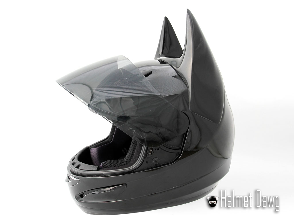 Helmet Dawg ha creato un curioso casco chiaramente dedicato ai fan di Batman. Chiamato “Dark As Night” (chiaramente un gioco di parole con Dark Knight – cavaliere oscuro) il casco, completamente nero, si caratterizza per le due “orecchie” che ricordano molto quelle della maschera da pipistrello di Batman.
