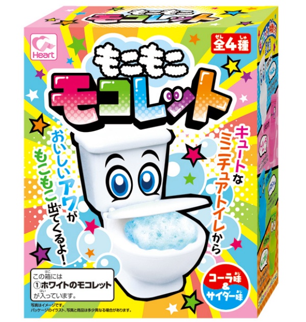 La confezione contiene un modellino di un water, da montare. Dopo di che si mette della polvere di caramelle nello “sciacquone”, e la si mescola con acqua.