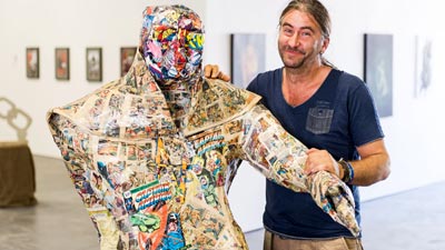 Con questi fumetti, che credeva carta straccia di nessun valore, ha realizzato la sua scultura, intitolata Paperboy.