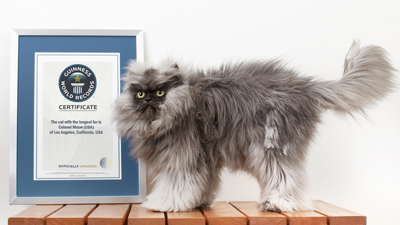 Il gatto, un persiano-himalayano di due anni, ha peli lunghi oltre 22 centimetri: un valore misurato da ben tre laboratori indipendenti che hanno poi sottoposto i risultati al comitato dei Guinness.