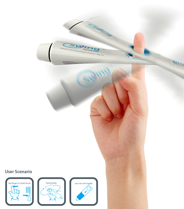 Un gruppo di studenti di design industriale dell’Università di Dankook hanno proposto una soluzione interessante, ridisegnando il tubetto del dentifricio, e dotandolo di un anello sul fondo. Quando il dentifricio si avvicina ad esaurirsi, si utilizza l’anello per fare roteare il tubetto: in questo modo la forza centrifuga dovrebbe spingere il dentifricio verso “l’uscita”.