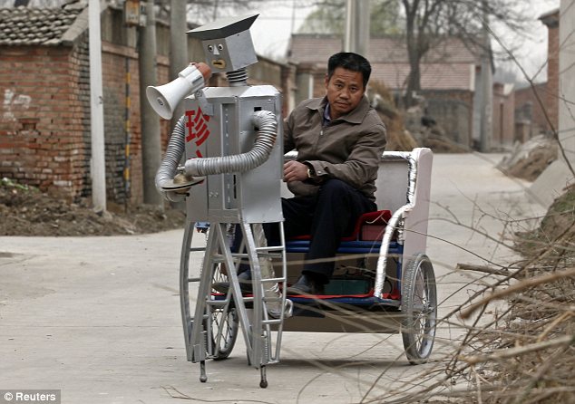 Il quarantottenne Wu Yulu ha un hobby molto particolare: costruisce robot. I più curiosi sono probabilmente i robot che guidano (anche) un risciò.