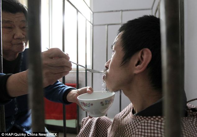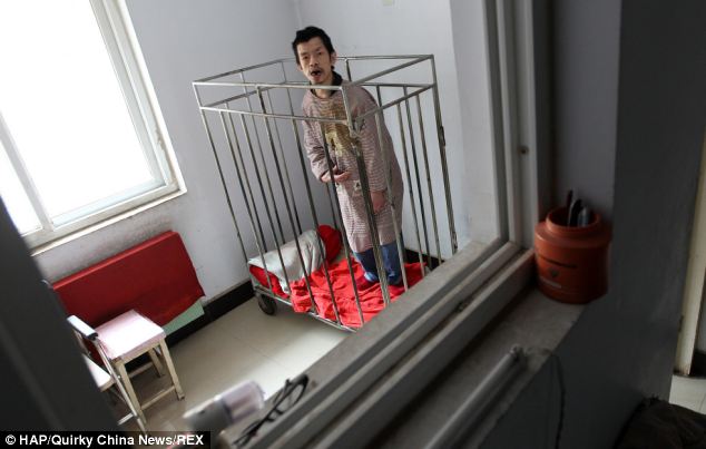 Per affrontare il problema, la donna ed il marito non hanno avuto idea migliore che rinchiudere Weiqing in una gabbia, anche perché non avevano i soldi per farlo visitare da uno specialista. Nel corso degli anni, poi la gabbia è stata semplicemente ingrandita (non di molto, va detto).
