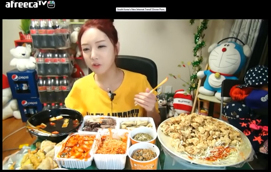 Non sono solo gli americani ad avere un’attrazione quasi erotica con il cibo: l’ultima moda in Corea del Sud è il “mok-bang”, traducibile approssimativamente come “pranzo in diretta”, dove giovani e belle ragazze si ingozzano letteralmente di cibo.