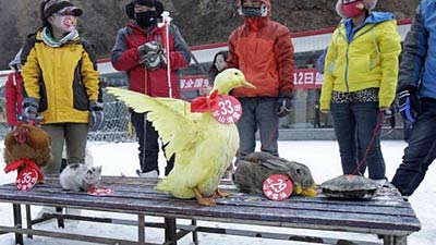 Sono sul piede di guerra alcune associazioni animaliste cinesi, che chiedono che le autorità intervengano per vietare la ripetizione di una curiosa gara sugli sci in cui i partecipanti sono animali.