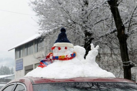 Mini-pupazzi di neve come decorazione per i tettucci delle auto