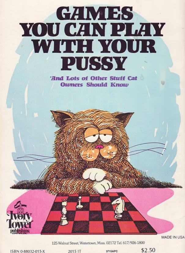 “Giochi che puoi fare con la tua f_ca“. L’autore intendeva “pussy” nel senso di gatto, però (tanto è vero che sembra che un’edizione successiva abbia corretto il titolo in “Games you can play with your pussy cat”.