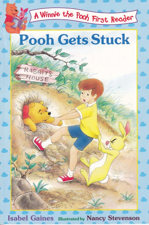 “Pooh” suona molto come “poo”, “cacca”. Ed il titolo diventa così “La cacca rimane incastrata”.