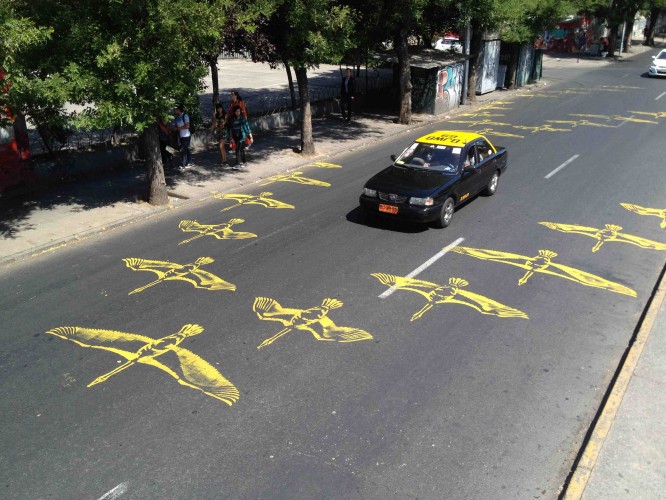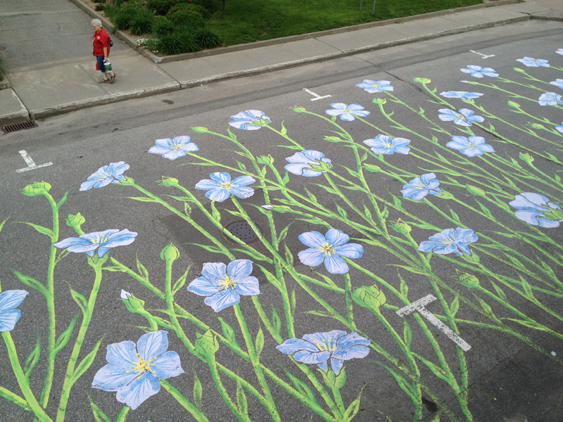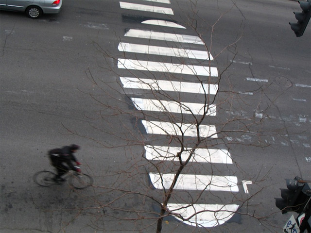 L’artista canadese Peter Gibson ha iniziato una campagna nel 2001 per sensibilizzare sulla necessità della realizzazione di piste ciclabili nelle città del Canada: una campagna ad elevato contenuto artistico, con grossi disegni sull’asfalto che reinterpretavano gli spazi cittadini.