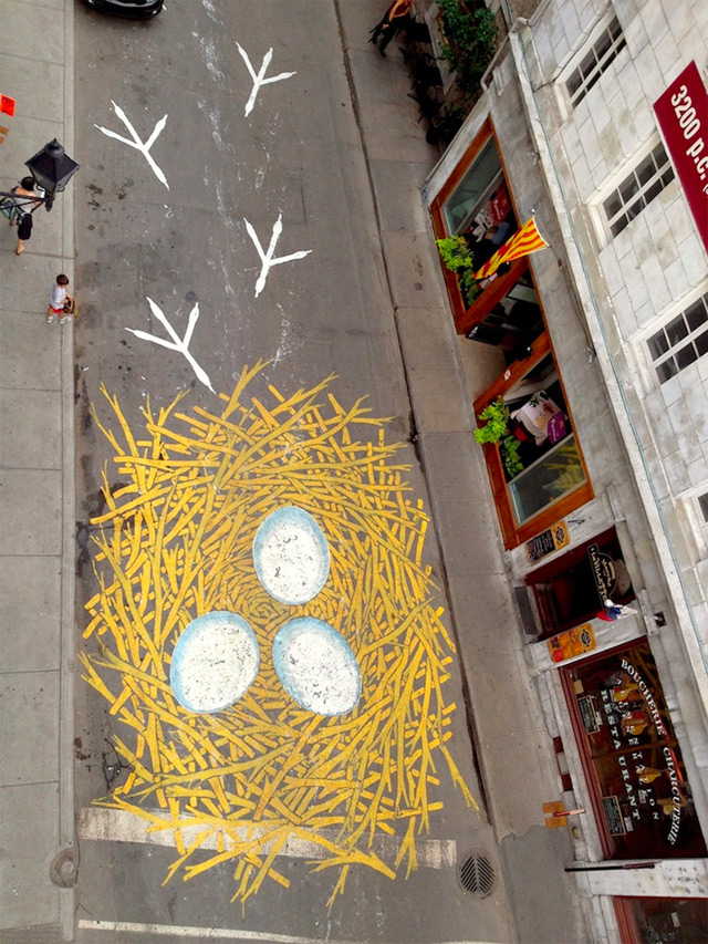 Da allora Roadsworth ha continuato con le sue opere, trasformando strade e parcheggi con ironia ed un occhio all’ambiente, con dei risultati che non lasciano certamente indifferenti.