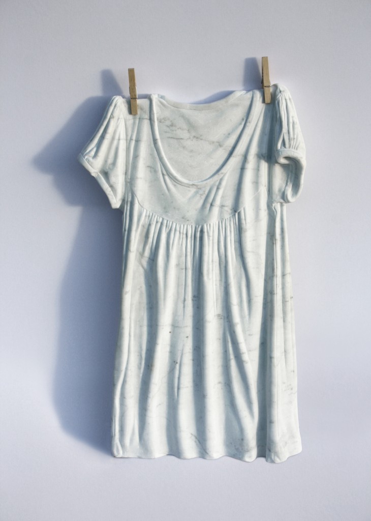 I vestiti bianchi che vedete in queste foto, ariosi e leggeri, sono in realtà opere d’arte fatte in marmo dallo scultore scozzese Alasdair Thomson.
