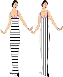 E’ opinione diffusa che indossare un vestito a righe orizzontali faccia sembrare più grassi. Una ricerca scientifica ha affrontato la quesitone, anche perché una nota illusione ottica, nota come illusione di Helmholtz, insegna invece il contrario: riempiendo di righe orizzontali un quadrato, questo tende a sembrare più sottile.