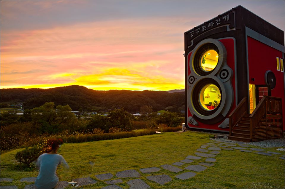 Un barista della Corea del Sud appassionato di fotografia ha deciso di costruirsi un locale a forma di macchina fotografica, per coniugare lavoro e passioni.
