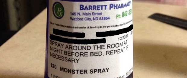 Una farmacia del Nord Dakota ha trovato la cura per le parure di un bambino di sei anni che non riusciva a dormire perché aveva paura che ci fossero dei mostri nella sua stanza: i farmacisti hanno preparato uno spray colorato ed etichettato come “spray contro i mostri”, con tanto di istruzioni per l’uso.