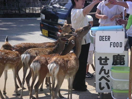 L’isola di Miyajima, in Giappone, è famosa per i cervi “addomesticati” che la popolano: gli animali infatti vagano liberamente per la città e entrano quasi in casa delle persone per farsi dare da mangiare.