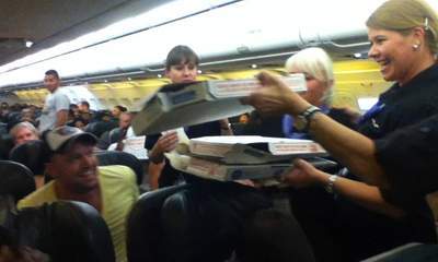 Di fronte alla prospettiva di diverse ore di ritardo, il capitano ha deciso di rompere i normali protocolli, ed ordinare alcune decine di pizze che ha pagato di tasca sua, da distribuire ai passeggeri. L’ordine ha colto di sorpresa anche il titolare della pizzeria, della famosa catena Domino’s, che ha ricevuto l’ordine: infatti erano le 10 di sera e stava già quasi chiudendo e mandando a casa i dipendenti.