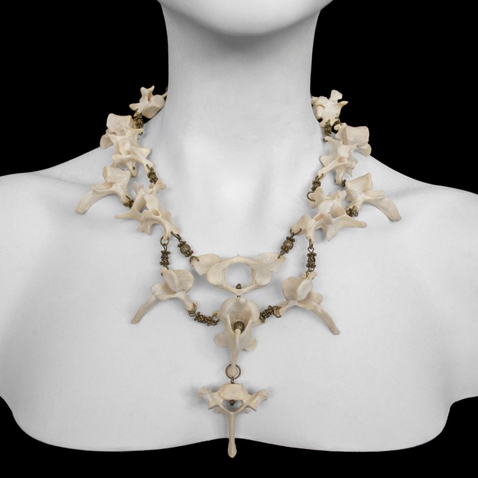 Le ossa con cui realizza accessori e gioielli vengono scelte con cura da Kristin, prelevandole da animali morti per cause naturali o più spesso da animali investiti dalle auto.