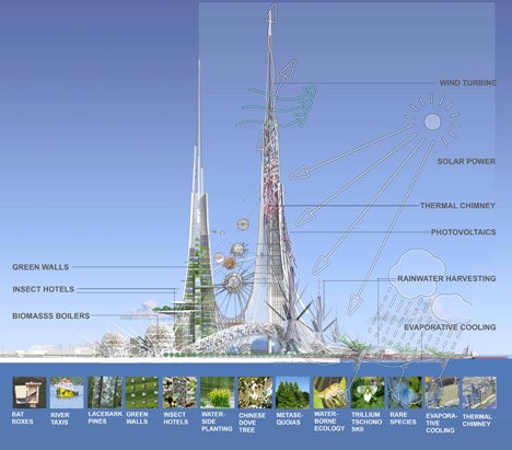 Ma Laurie Chetwood, a capo del team di progettisti, spiega che l’obiettivo non è soplo quello di conquistare il record di grattacielo più alto del mondo: “Abbiamo applicato quante più idee ‘ambientali’ che potevamo, per realizzare la forma e le dimensioni delle torri”.