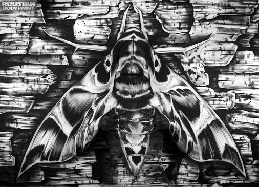 Paul Roustan è un pluripremiato artista del body painting, ed è facile capire perché guardando le sue opere. Una delle opere più impressionanti dell’artista di Chicago è una falena in bianco e nero.