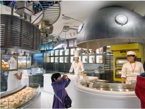 Future Sweets Factory, questo il nome del negozio, è collocato all’interno della pasticceria Koyama, e ricorda molto la fabbrica di cioccolato di Willy Wonka. Una volta salutati i genitori, i giovani clienti sono fatti entrare (da una porta a misura di bambino) nel negozio, dove vengono tentati da assaggi di caramelle appena confezionate, per la maggior parte non ancora in commercio sul normale mercato (da cui il nome “Future Sweets” del negozio). Inoltre i bambini possono vedere dal vivo la preparazione delle torte.