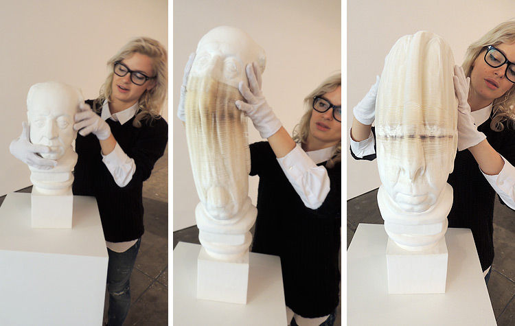 I busti infatti sono costituiti da sottilissimi fogli di carta, che si possono distendere a fisarmonica per estendere e distorcere l’opera, con effetti che lasciano a bocca aperta.