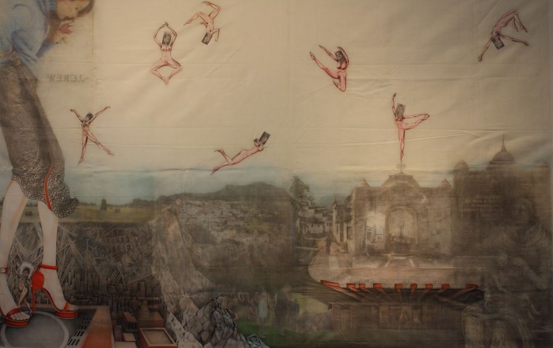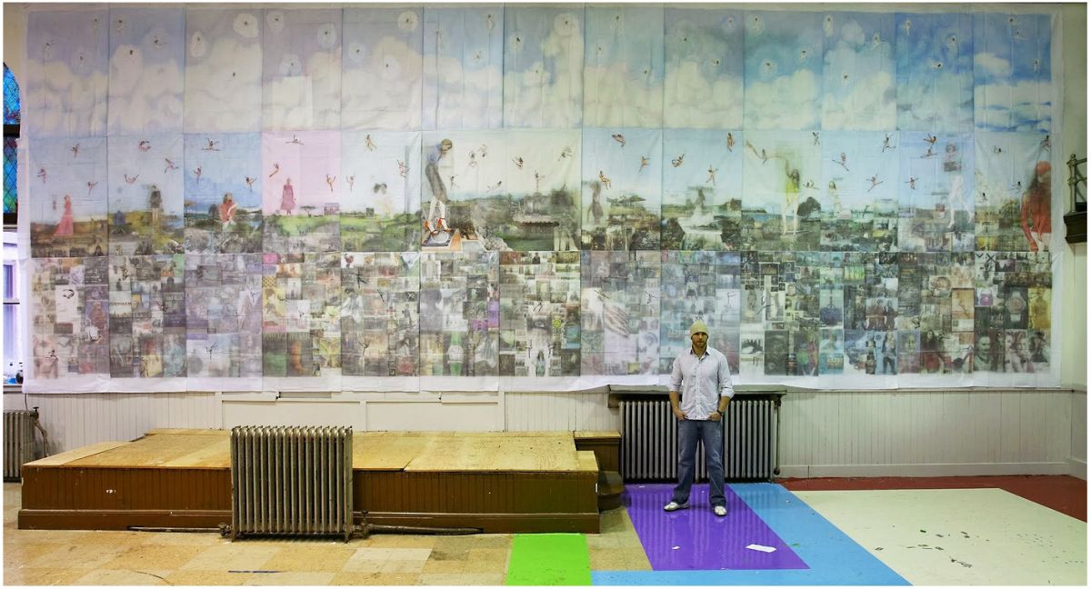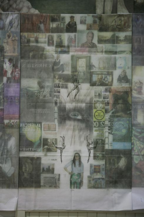 Jesse non aveva grandi mezzi a sua disposizione, ma solo oggetti banali come vecchi quotidiani, lenzuoli e gel per capelli. Ma con solo questi è riuscito a creare un’opera che non poteva passare inosservate: un grande murales, creati trasferendo le foto dei giornali sui tessuti dei lenzuoli usando il gel come agente di trasferimento.