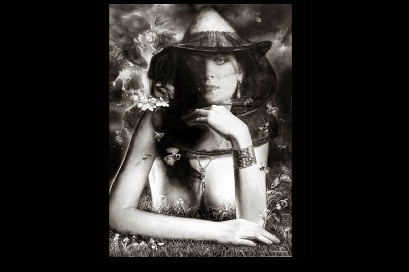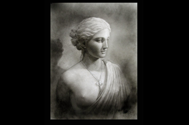 Le opere hanno un aspetto etereo e volatile e, per quanto siano in bianco e nero, si fanno apprezzare proprio per i colori: il nero infatti è “luminoso”, e ha una profondità che al confronto il carboncino è piatto e pallido.