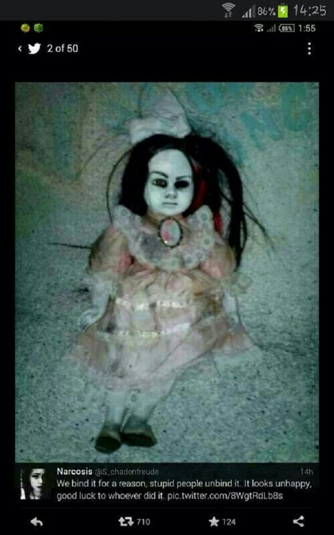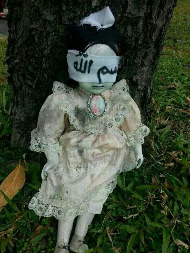 La bambola poi perseguiterebbe chi la possiede e per liberarsene i proprietari avrebbero avuto come unica strada quella di bendarla, e sulla stoffa scrivere in caratteri arabi “bismillah”, cioè “in nome di Allah”, poiché questo sarebbe l’unico modo di accecare il demonio e impedirgli di seguirvi di nuovo fino a casa.