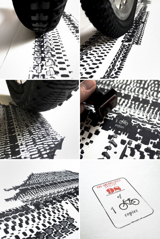 Ogni opera è intitolata e descritto prendendo ispirazione dal mondo della bicicletta: ad esempio, l’opera che rappresenta il Tower Bridge è intitolata “God Save the Bike”, ed è descritta come “Che ci sia traffico, inferno, o acqua alta, nulla fermerà la crescente cultura londinese della bicicletta, grazie alle corsie protette per ciclisti. Ammirate i suoi verdi parchi e l’iconica architettura, compreso il Tower Bridge rappresentato dalle impronte di 11 copertoni”.