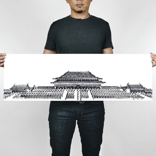 Le opere di Thomas Yang sono minimaliste e geniali, ed è la tecnica usata ad essere particolarmente insolita: come “pennelli” infatti Yang usa copertoni di bicicletta, un’idea che gli è venuta per la sua passione per il ciclismo.