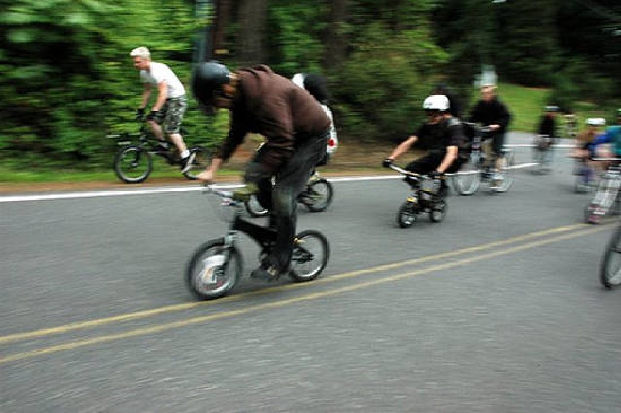 La velocità che possono toccare gli “zoobomber” varia dai 50 agli 80 km/h, a seconda delle caratteristiche del mezzo: oltre alle bici, qualcuno oggi usa anche skateboard o rollerblade, sempre misura bambino.