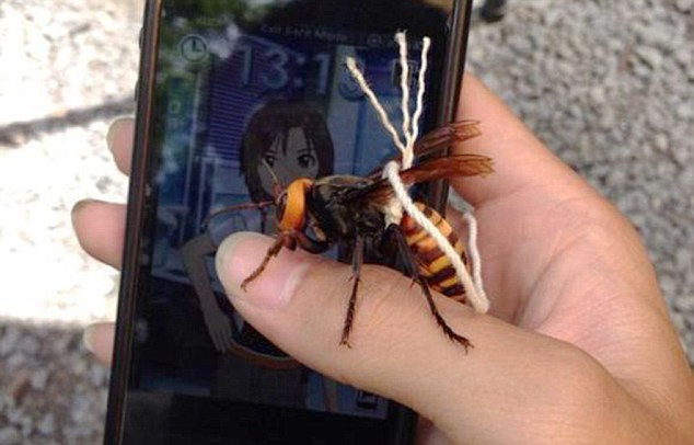 L’uomo dice di avere catturato la vespa con un retino da farfalle, e poi averle rimosso il pungiglione e la sacca di veleno, mettendole poi uno spago intorno alla vita in modo che lo segua dovunque.