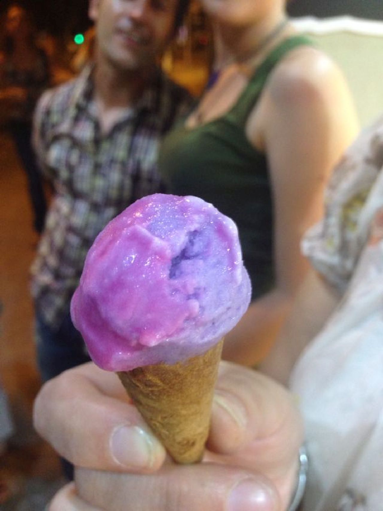 “Tutti ridevano, ma come fisico so che ci sono diverse strade per ottenere questo risultato, e sono stato soddisfatto quando ce l’ho fatta ed ho creato un gelato che cambiasse colore. Era importante usare solo ingredienti naturali, così la cosa ha richiesto un po’ più di tempo”, racconta Linares.