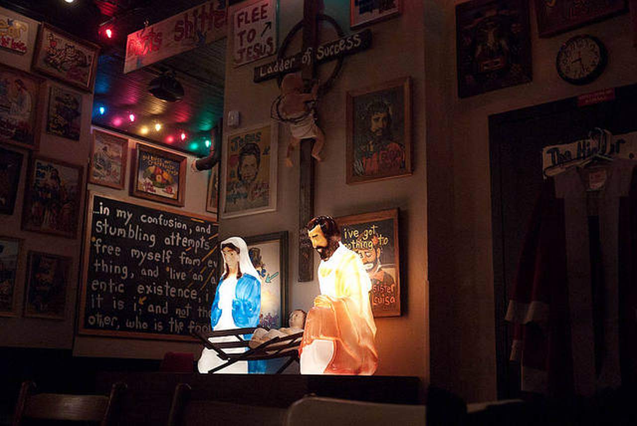 Il fondatore del bar, l’artista Grant Henry, racconta che le opere religiose che ha creato per arredare il bar sono per lui il vero cuore del locale: “L’ho creato dal punto di vista artistico, perché sono un artista più che un barista. E’ più una galleria d’arte che vende anche alcolici”.