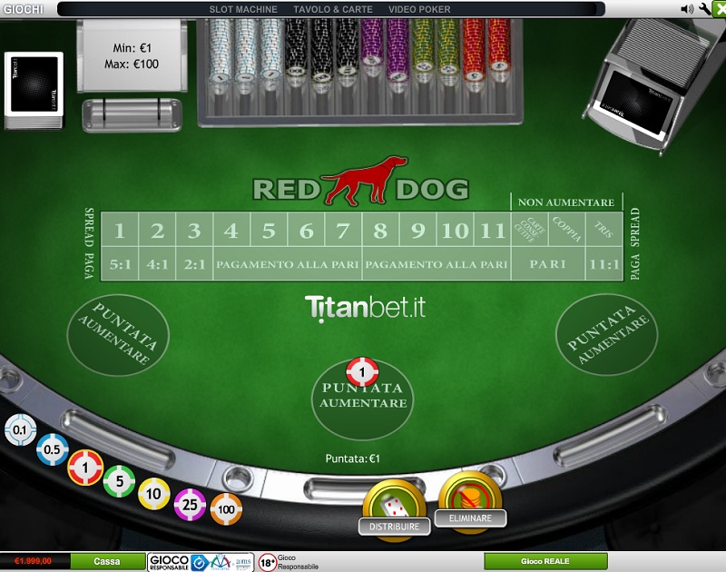 Ancora poco diffuso in Italia, questo gioco è presente su molte delle piattaforme di gaming online in Italia, fra queste Titanbet.it. Di origine antichissima (si pensa risalga addirittura al Far West), si tratta di un gioco che si fa con tre carte. Lo scopo? Predire se il valore della terza carta distribuita è a metà tra quello della prima e della seconda. Per giocare è sufficiente un mazzo di carte: il giocatore fa la sua puntata e riceve le prime due carte. Da qui dovrà sperare che la terza sia a metà fra di esse. Se questo gioco non vi attira, potrete comunque tranquillamente divertirvi con i giochi di casinò live di TitanBet.it, come roulette o blackjack, decisamente più tradizionali del Red Dog.