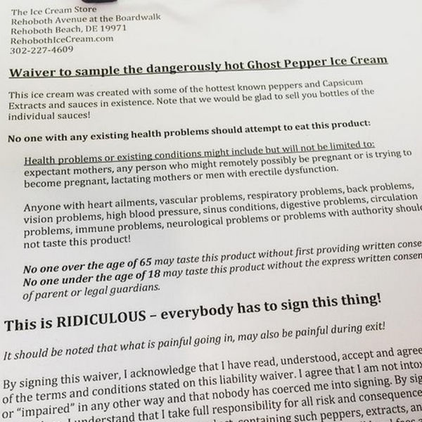 I peperoncini usati sono così piccanti che in alcuni villaggi dell’India gli abitanti li strisciano sui recinto per tenere gli elefanti lontani: e non a caso per assaporare il gelato è necessario firmare una liberatoria che avverte i coraggiosi di “essere preparato per un bruciore che resterà più tempo di quel che vorreste”, e in cui chi firma dichiara di essere in buone condizioni di salute e di sollevare da responsabilità la gelateria.