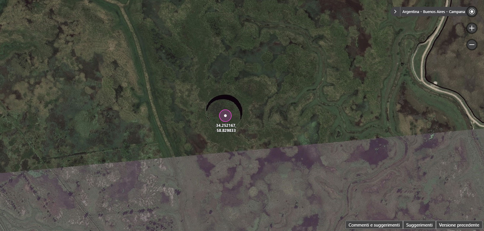 Il movimento dell’isola (che si trova alle coordinate 34°15’07.8’S 58°49’47.4?W è evidente guardando a foto satellitari scattate in momenti diversi, dunque ad esempio confrontando quelle presenti su Google Maps e su Bing: si può chiaramente notare che nella prima la lingua d’acqua si trova a ovest, mentre nella seconda la si vede a nord-est.
