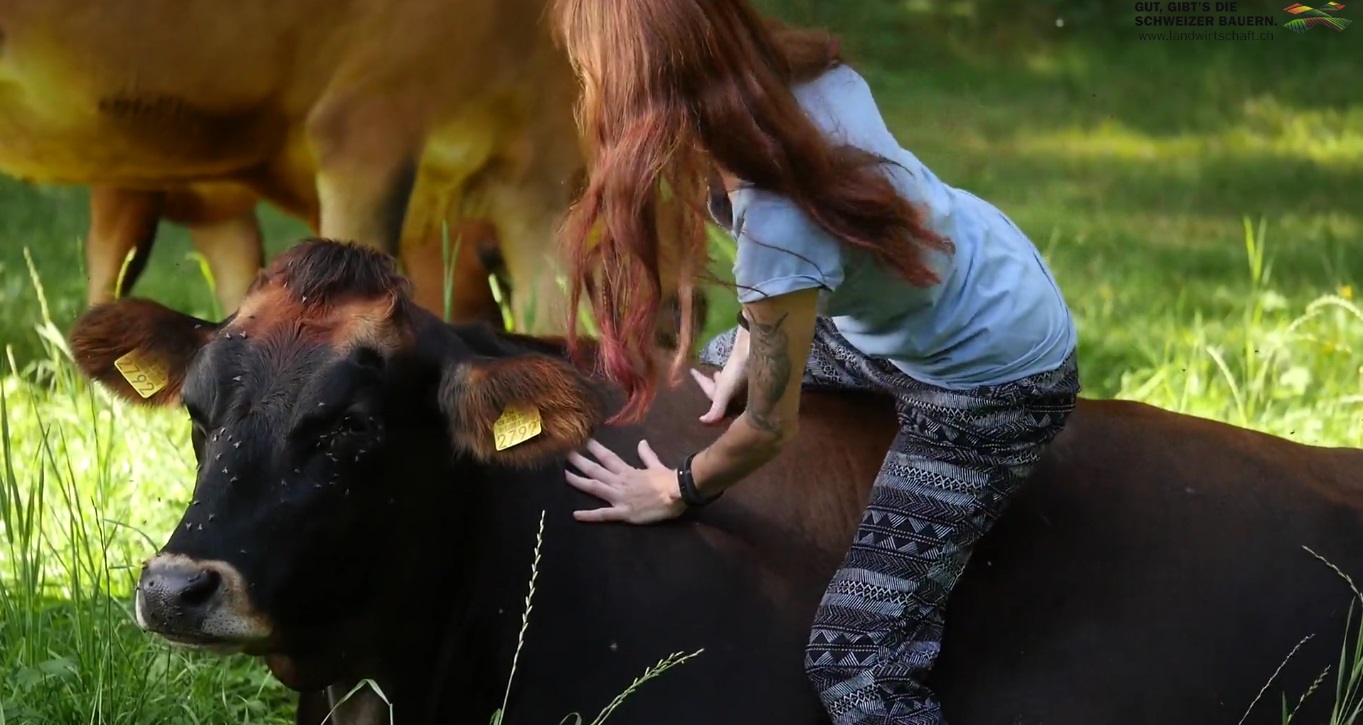 Una nuova e decisamente insolita terapia per il relax è nata in Svizzera: coccole con le mucche. Tutto è iniziato circa tre anni fa presso in una fattoria di Tenniken, vicino a Basilea, dove la famiglia Zwygart produce latte. Sibylle e suo padre stavano aiutando una vacca durante il parto: a venire alla luce furono due femmine sterili e un maschio, inutili per la fattoria dato che nessuno di questi poteva produrre latte.