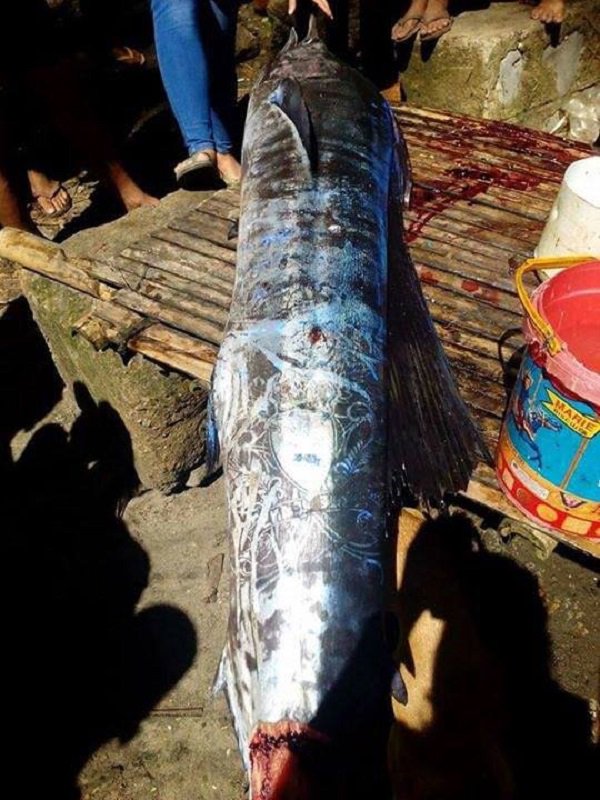 Il pesce è stato catturato da dei pescatori nella zona di Lopez Jaena, che non hanno potuto non rimanere stupiti di fronte al disegno, che tra l’altro comprende una sorta ti stemma con una corona su uno scudo, delle lettere e dei rami. Inevitabilmente, il pesce ha attirato la curiosità dei passanti che hanno condiviso poi le foto in rete, che sono poi state riprese da diversi giornalisti.