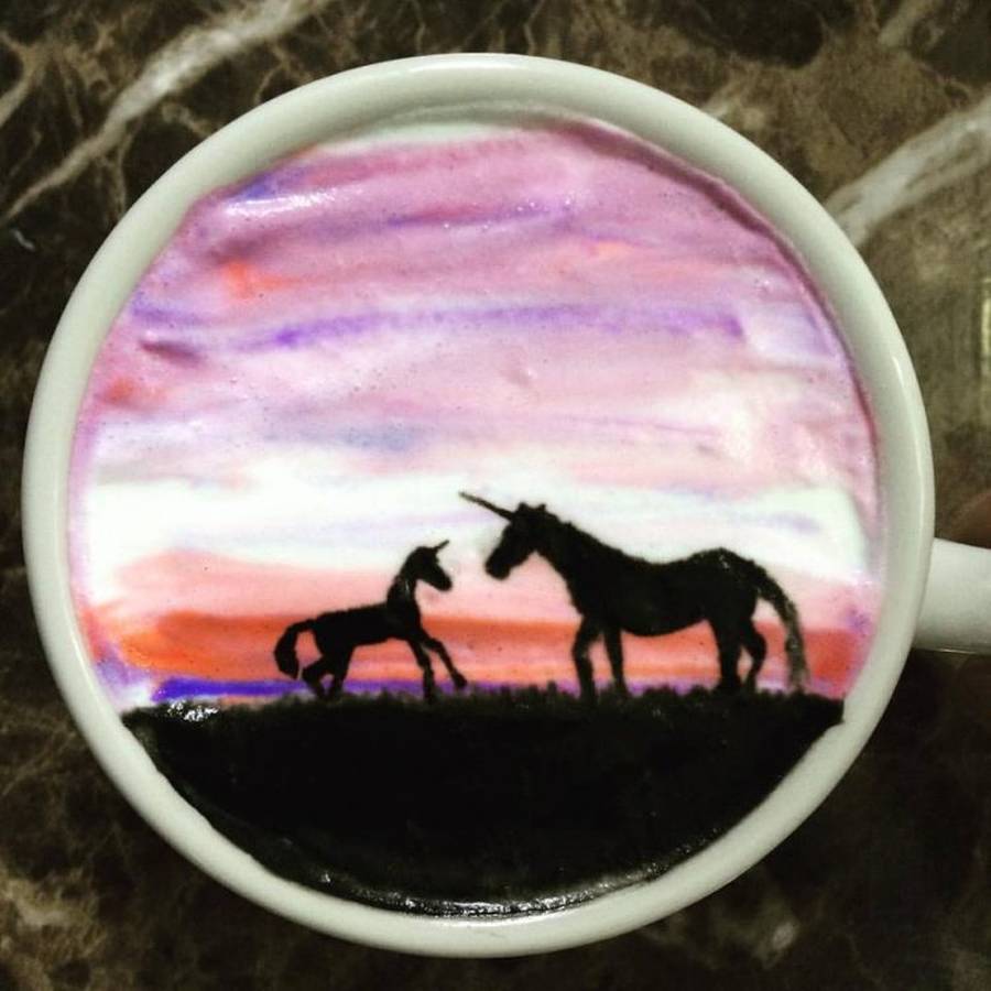 Lee riproduce di tutto sulla schiuma del cappuccino: da famose opere d’arte, come la “Notte Stellata” di Van Gogh, a personaggi di cartoni animati, a ritratti. Queste opere sono così ben riuscite che diventa difficile ricordarsi che sotto c’è un cappuccino.