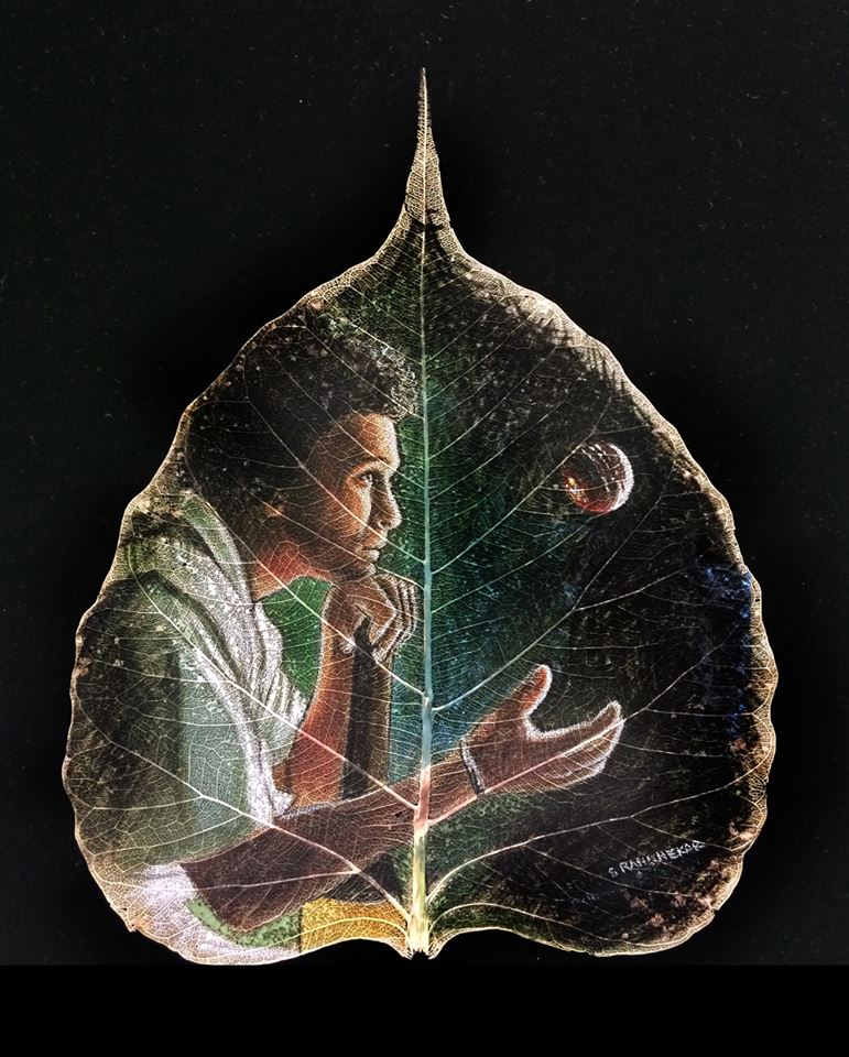 L’artista indiano Sandesh S. Rangnekar usa qualcosa di molto particolare come tela per le sue opere: “scheletri” di foglie.