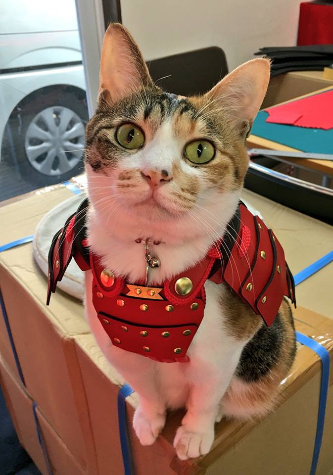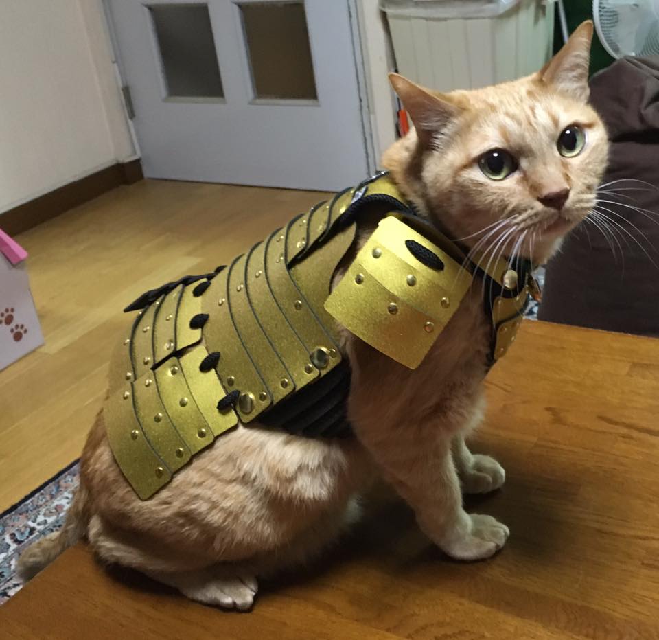 Un altro gatto in vestito da samurai – da facebook/samuraiage