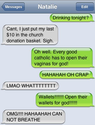 – Oh, beh. Ogni buona cattolica deve aprire la propria vagina per Dio.