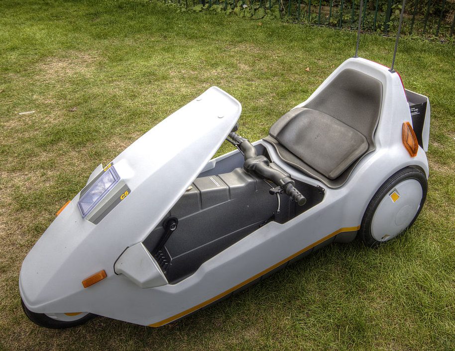 Il Sinclair c5 era un veicolo elettrico a batteria lanciato nel Regno Unito nel 1985. Si tratta di un veicolo a tre ruote a pedali (a pedalata sdraiata), assistito da un motore elettrico da 250 W con comando al manubrio. Il suo aspetto è quello di un veicolo uscito da un b-movie di fantascienza dell’epoca, e che puntava sul rispetto dell’ambiente e sull’economicità.